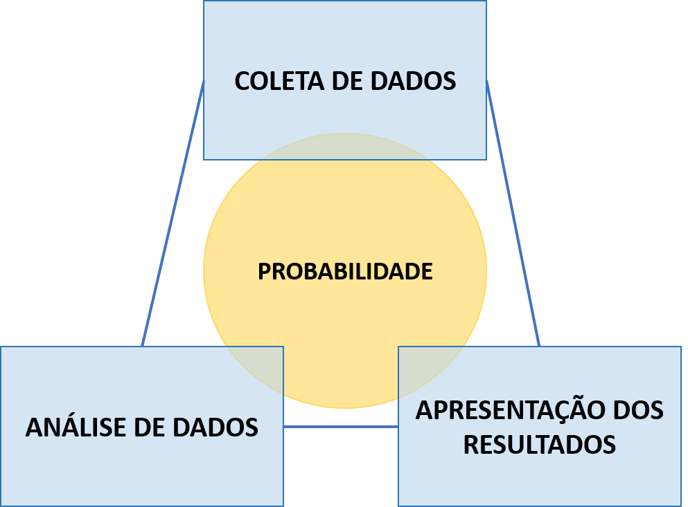 Conforme expresso na Figura 1.2, nestas etapas de coleta, análise, interpretação e apresentação de dados, a Estatística incorpora diversas ferramentas da Probabilidade. Na coleta, por exemplo, a Probabilidade pode ser útil no processo de amostragem dos dados. Definiremos alguns conceitos nas próximas seções, mas, de antemão, a Probabilidade nos ajuda a responder qual o tamanho amostral necessário para que determinado conjunto de dados possa representar, com alguma margem de erro, um comportamento observado em uma população. É o que acontece a cada dois anos com as pesquisas eleitorais. O número de entrevistas necessárias para se representar as intenções de voto da população é realizado pela Estatística através de métodos probabilísticos.