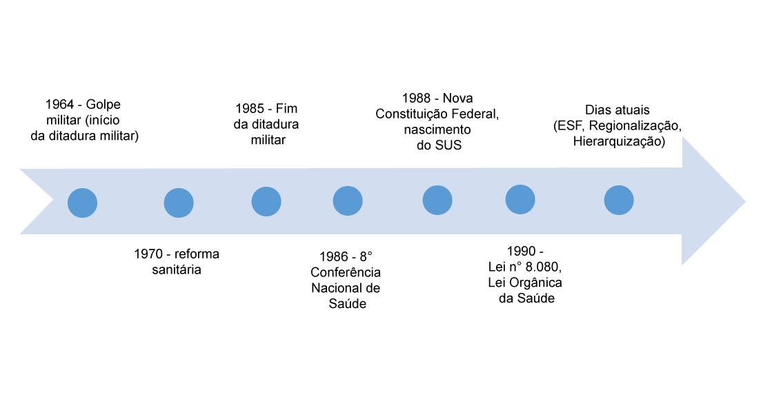 Após o fim da ditadura militar, em 1985, o Brasil ansiava por direitos, e o fato de a saúde estar numa situação crítica, com seus indicadores no chão, tais quais mortalidade infantil (morte de crianças menores de um ano para nascidos no mesmo período) e mortes por causas evitáveis em índices alarmantes, além de alta incidência de agravos em saúde, como difteria, tétano, sarampo, poliomielite, fez com que grupos de especialistas e pesquisadores multiprofissionais preocupados com saúde pública desenvolvessem teses e integrassem as discussões políticas, o que teve como marco a 8ª Conferência Nacional de Saúde, realizada em 1986.
