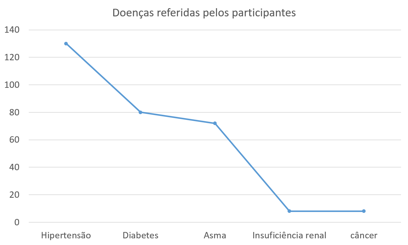 Você, como membro integrante do grupo de pesquisa, como modificaria o gráfico acima? Qual a melhor maneira de se apresentar as informações das doenças referidas pelos participantes do estudo?