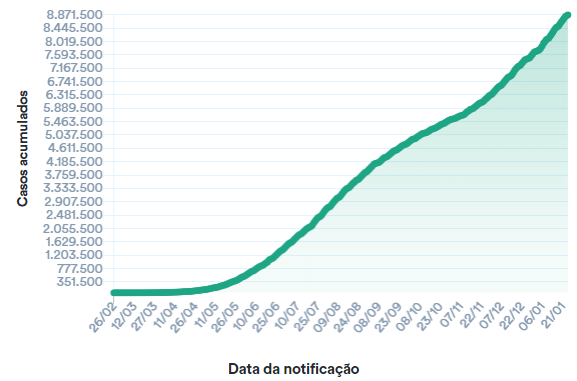 COVID-SAÚDE. Painel Coronavírus. Coronavírus Brasil, Brasília, 2021. Disponível em: https://bit.ly/3czvKbx. Acesso em: 26 jan. 2021.